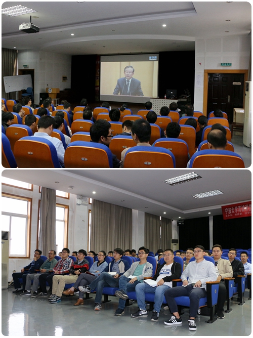 在报告厅集体观看学习《2018年全国科学道德和学风建设宣讲教育报告会》。