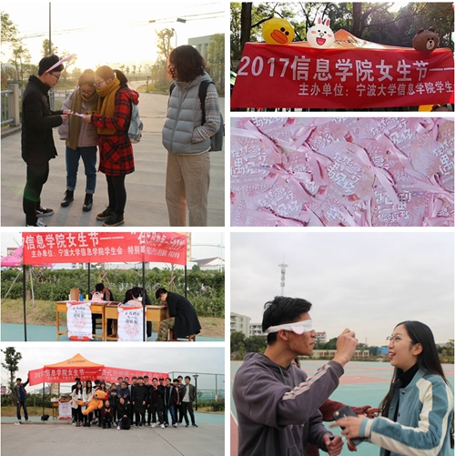 2017年女生节活动面向全校学生,形式多样,受到了许多同学的积极响应。活动主要由四个部分组成。21日线上点歌活动,同学们积极参与,纷纷在推送下方留言集赞;24日早上的甬江鹊桥送暖心早餐活动,给女生们带去了冬日里不一样的温暖;24日全天的有思广场摆摊活动,让参与的同学们有了更加亲密的互动。25日下午的Princess游园会,一个个小游戏,拉近了同学们之间的关系,也给本届女生节画上了一个完美的句号。