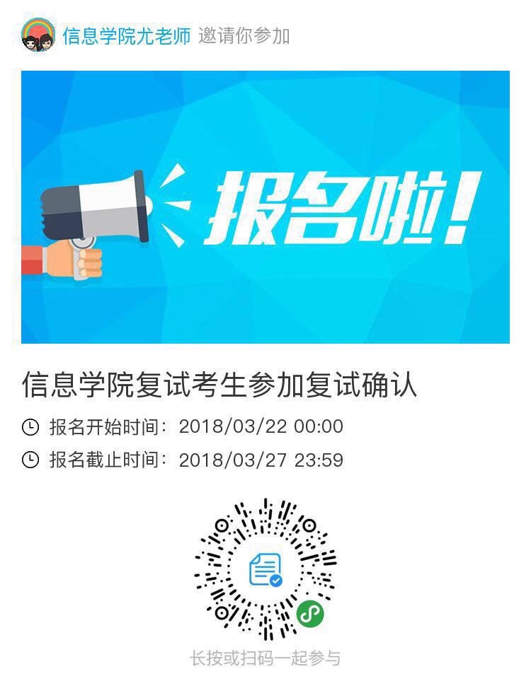 同时,请大家填写参加复试确认信息,扫描二维码。