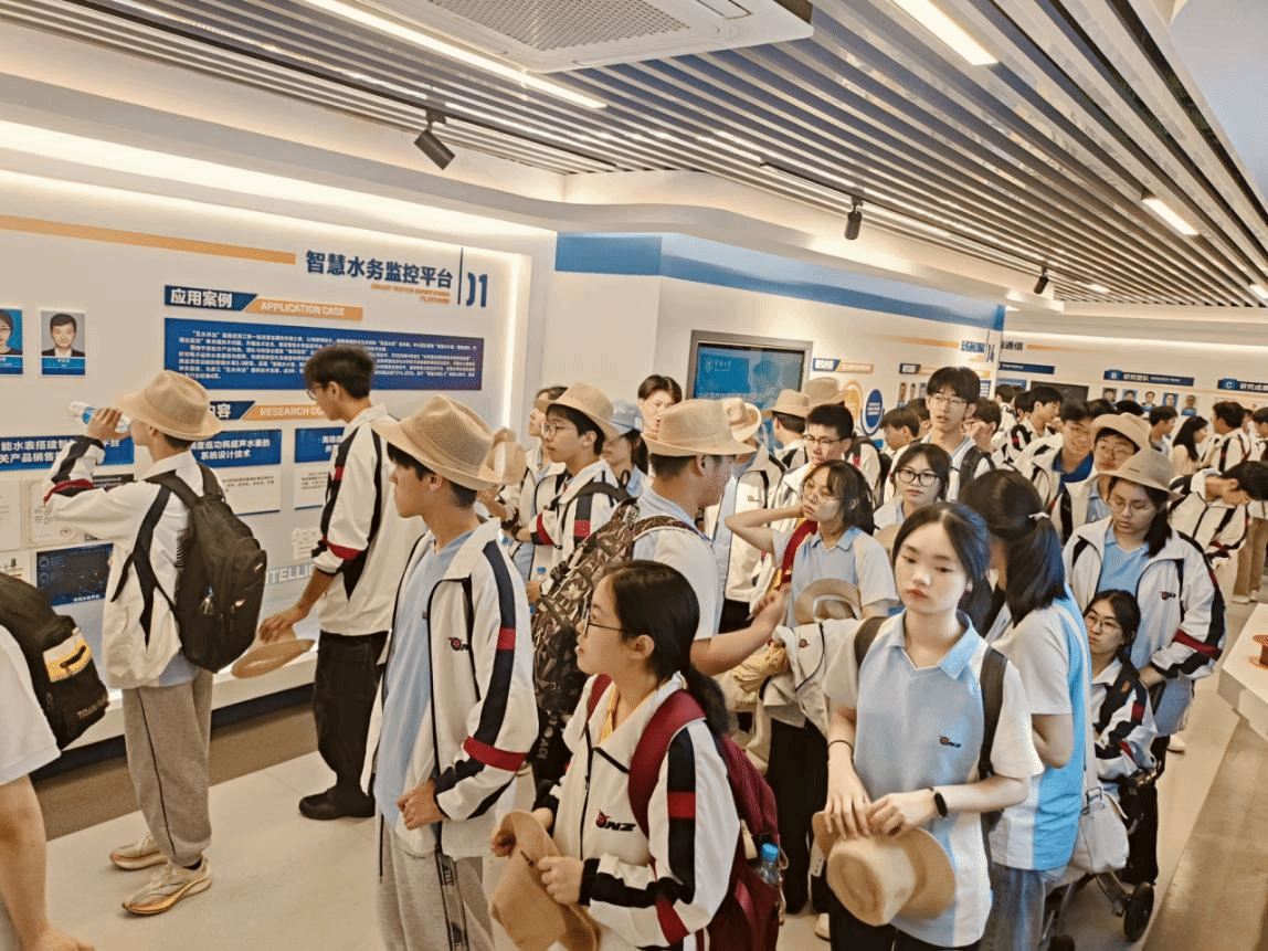 在“智慧水务监控平台”展区,同学们了解到了水务管理中的应用案例,包括水质监测、管网优化及应急响应等功能。通过观看“应用宝典”手册和成果展示,参访学子了解到平台如何通过大数据与窄带物联网技术实现水务系统的智能化管理。