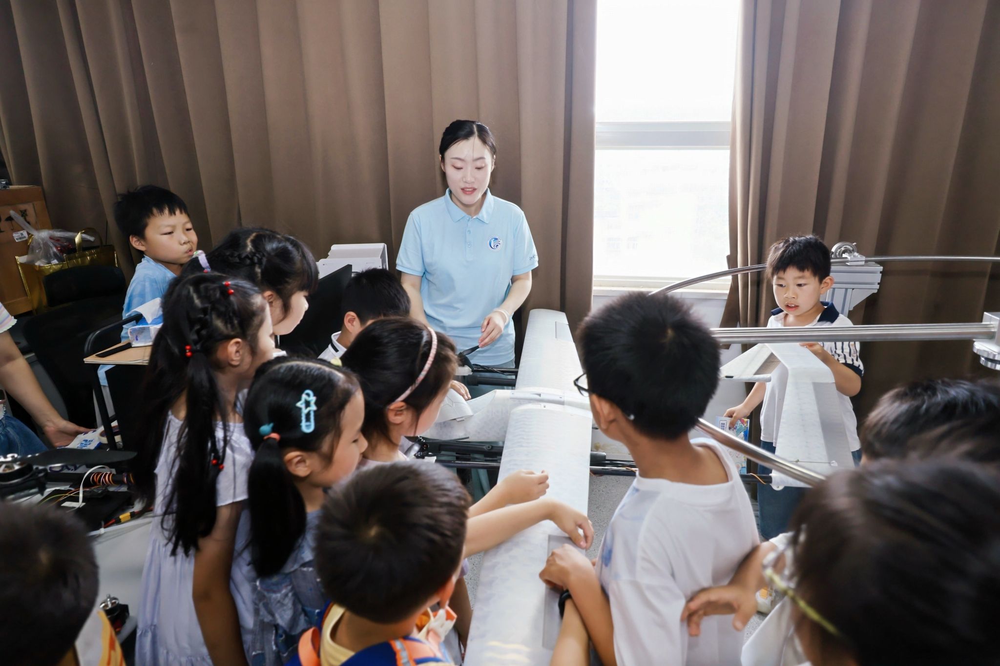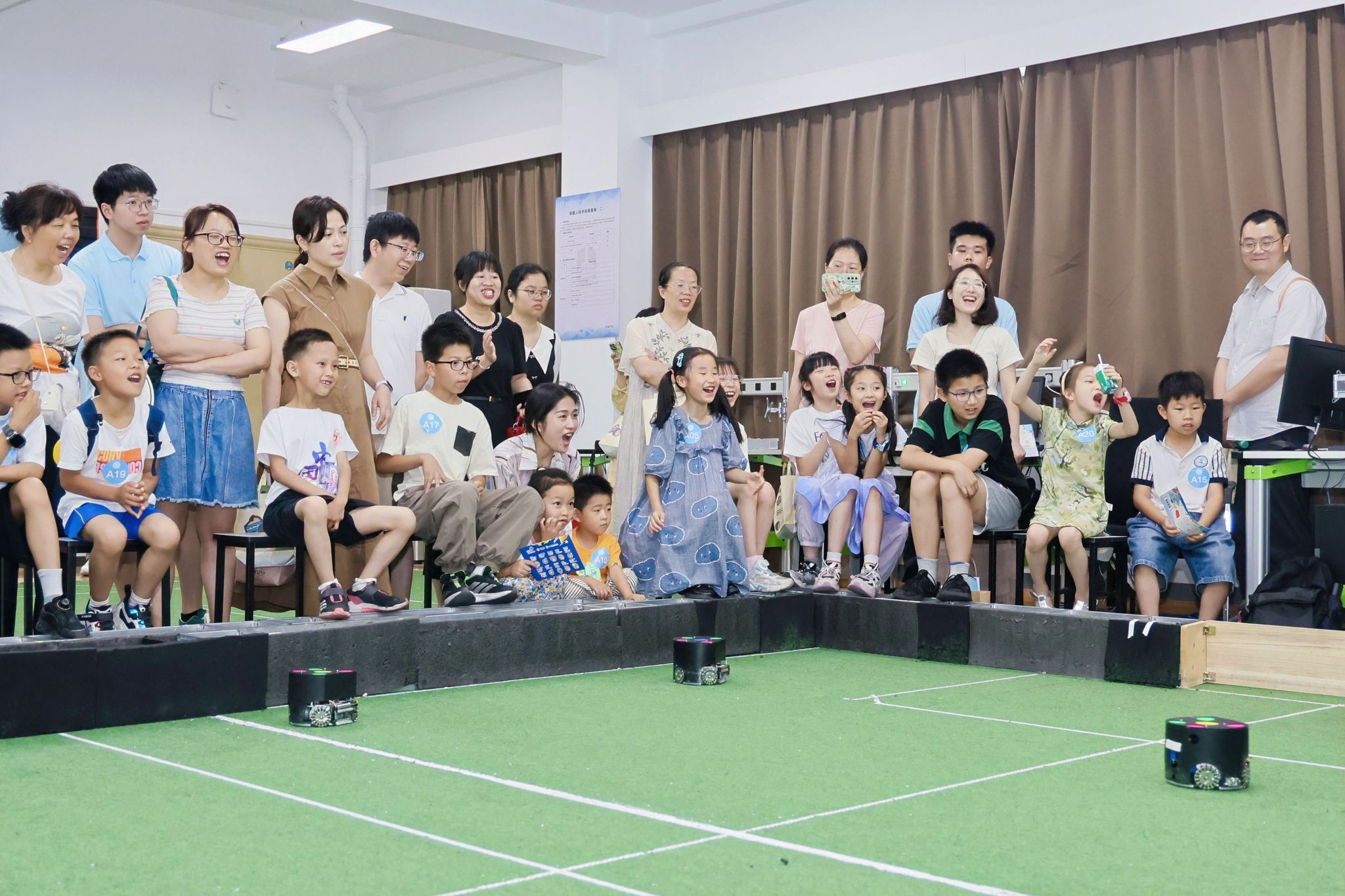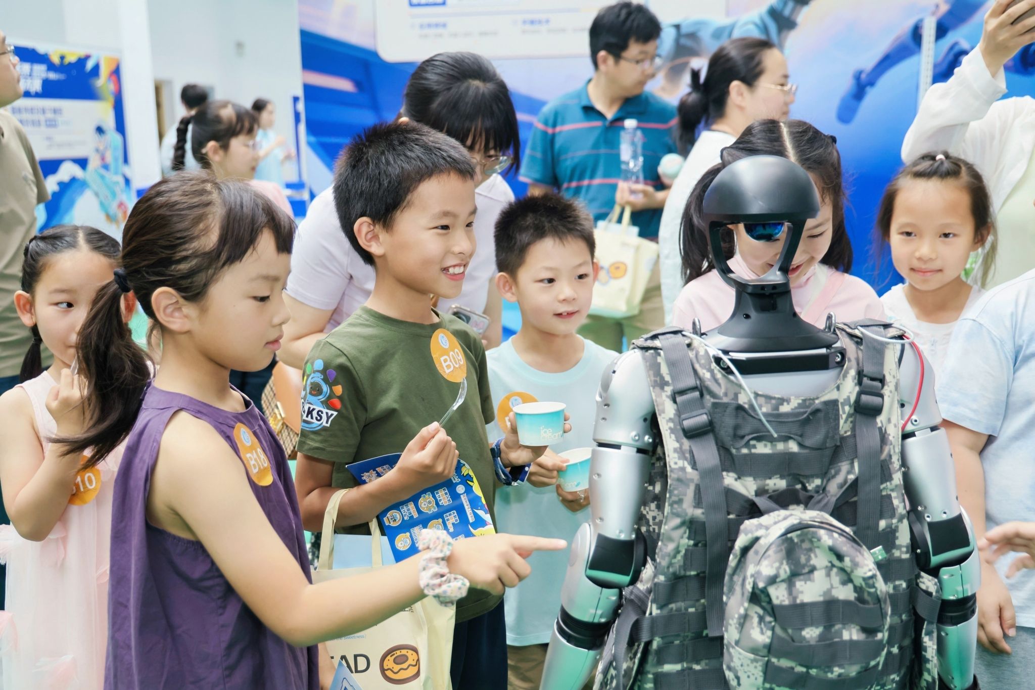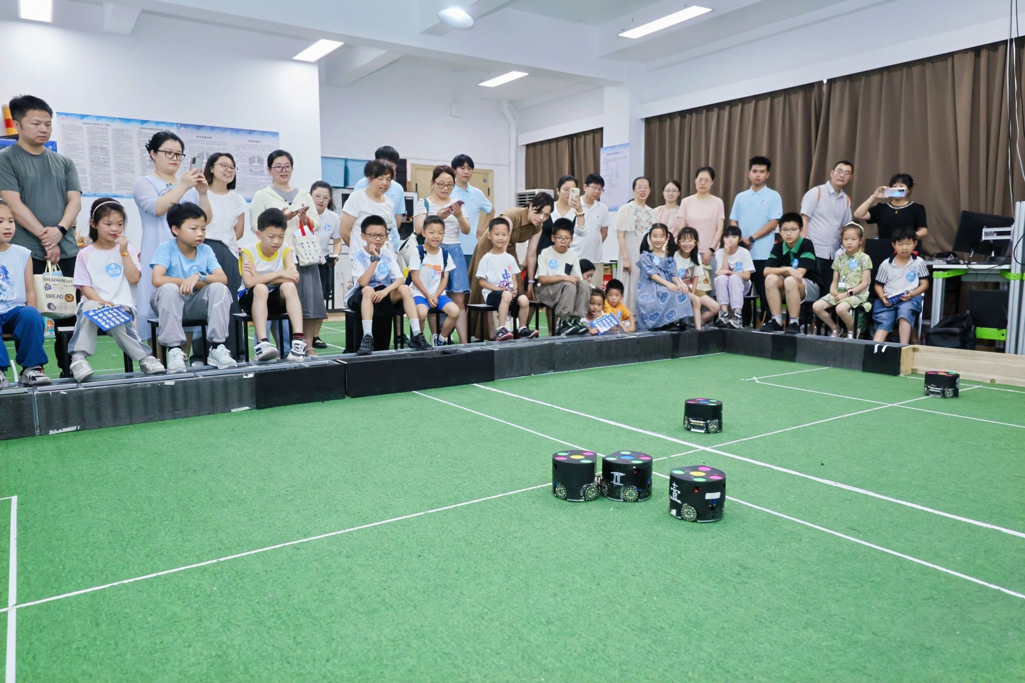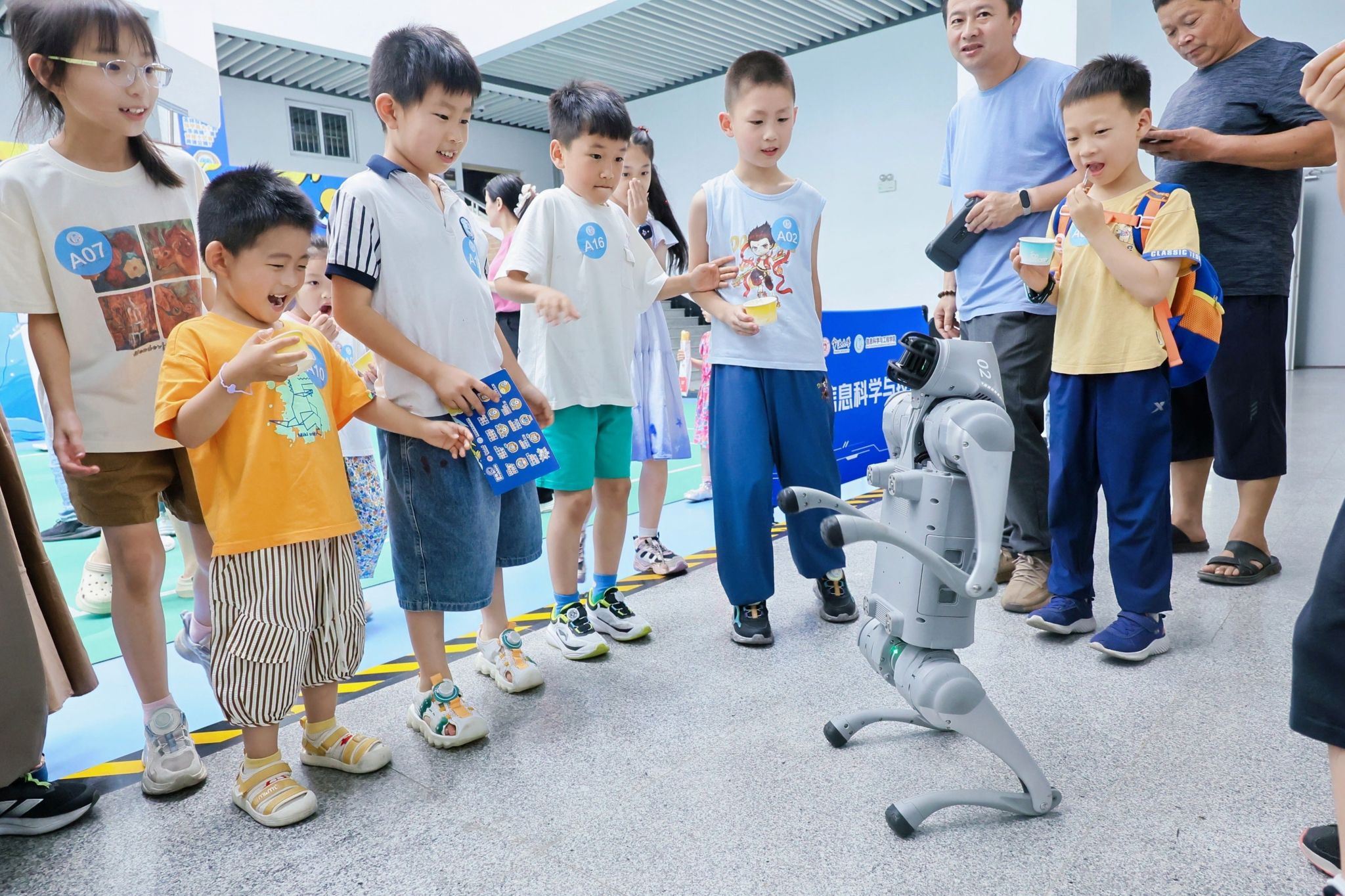 讲座结束后,孩子们分组参观了人形机器人研发实验室、机器人足球训练基地、自动控制实验室和红外成像实验室。在互动体验中,他们与机器人亲密接触,观看足球对抗赛,学习无人机工作原理,并体验了夜视仪的神奇功能,现场气氛热烈。