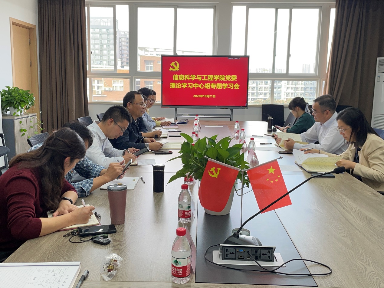 理论中心组所有成员参加。此次学习邀请校党委委员、副校长姚菊明进行巡听,学工部部长胡铭、组织部相关人员参加学习研讨。