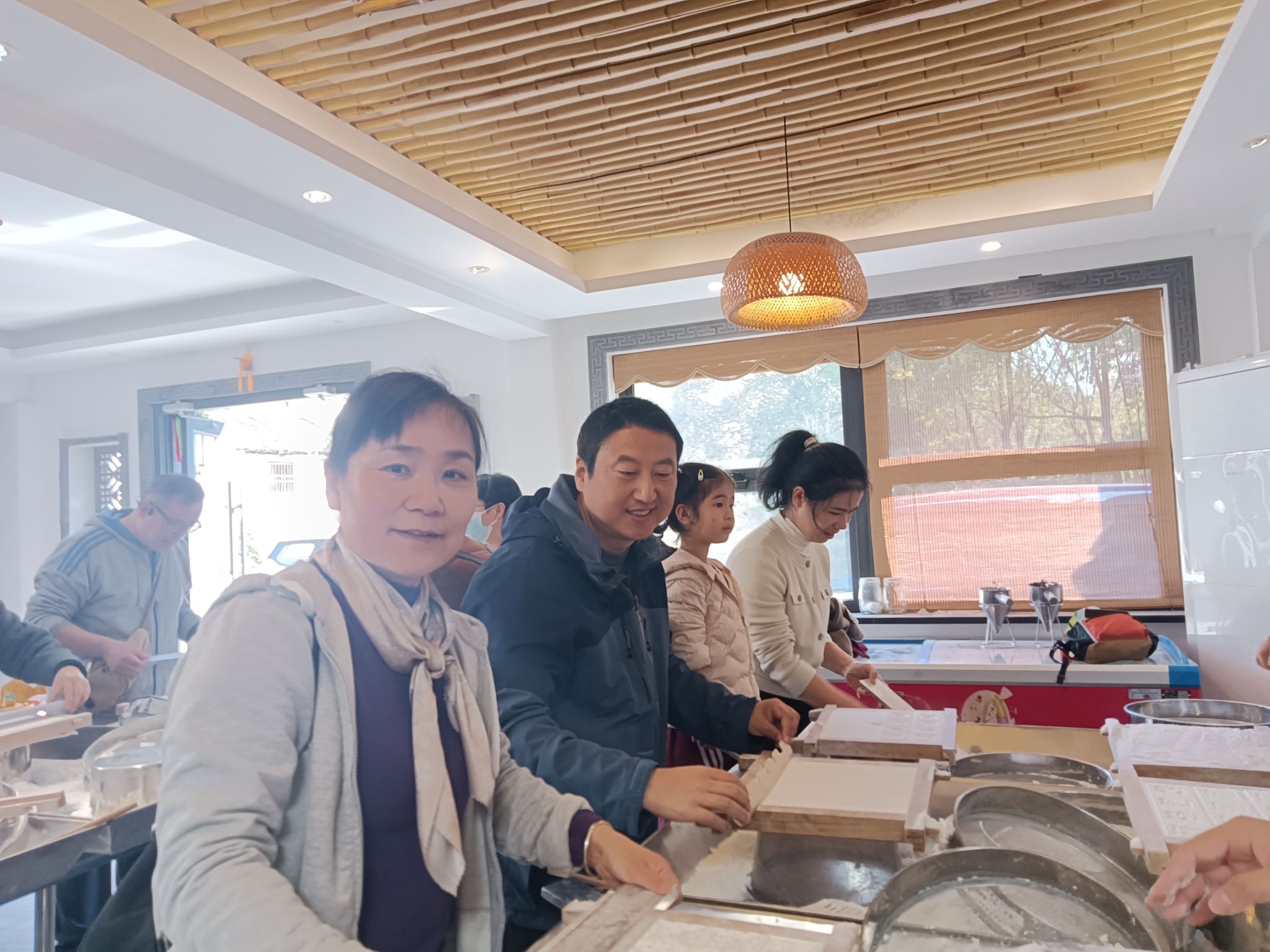 在实践活动环节,教职工党员们沿着共富路线参观横坎头村未来片区,直观感受乡村共富的生动实践;在非遗体验环节,教职工党员们亲手参与梁弄大糕制作,在传统技艺传承中体悟地方文化底蕴,切身感受乡村生态保护与发展协同并进的显著成果。一路学习、一路感悟,教职工党员们纷纷表示,此次红色研学既夯实了理论根基,又强化了责任担当,为践行全会精神筑牢了思想基础。