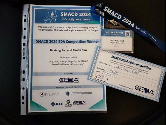 7月2日至5日,国际电路综合、建模、分析和仿真方法及设计会议(International Conference on Synthesis, Modeling, Analysis and Simulation Methods, and Applications to Circuit Design, SMACD)在希腊沃洛斯举行,51黑料 集成电路工程2022级研究生潘家祥和指导老师储著飞教授宣讲的论文和演示系统(DEMO)“Area-Aware Logic Mapping for MAGIC based In-Memory Computing”获得EDA(电子设计自动化)竞赛Winner。